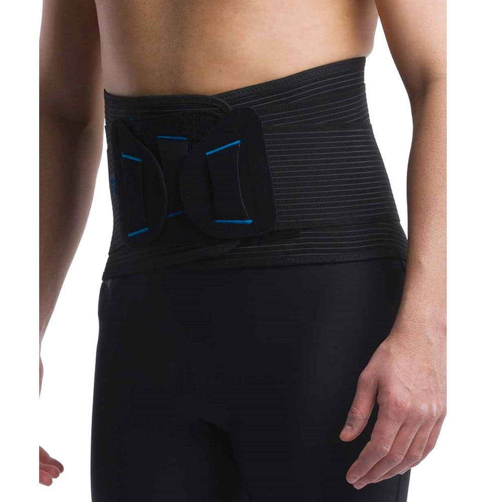 - dwa pasy dociągowe - umożliwiają łatwe dostosowanie szerokości oraz poziomu napięcia. Dzięki temu orteza owija biodra i pas, wspomagając dolny odcinek kręgosłupa.