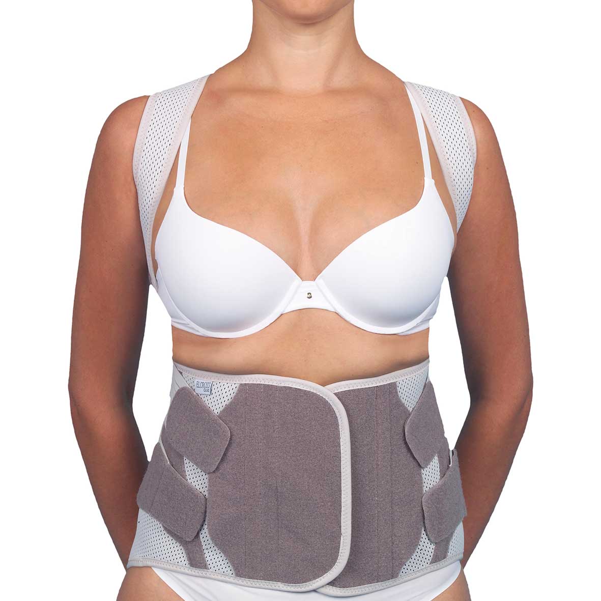 - elastyczne pasy na barki - zapobiegają przesuwaniu się ortezy i wspomagają jej dokładne przyleganie do ciała.