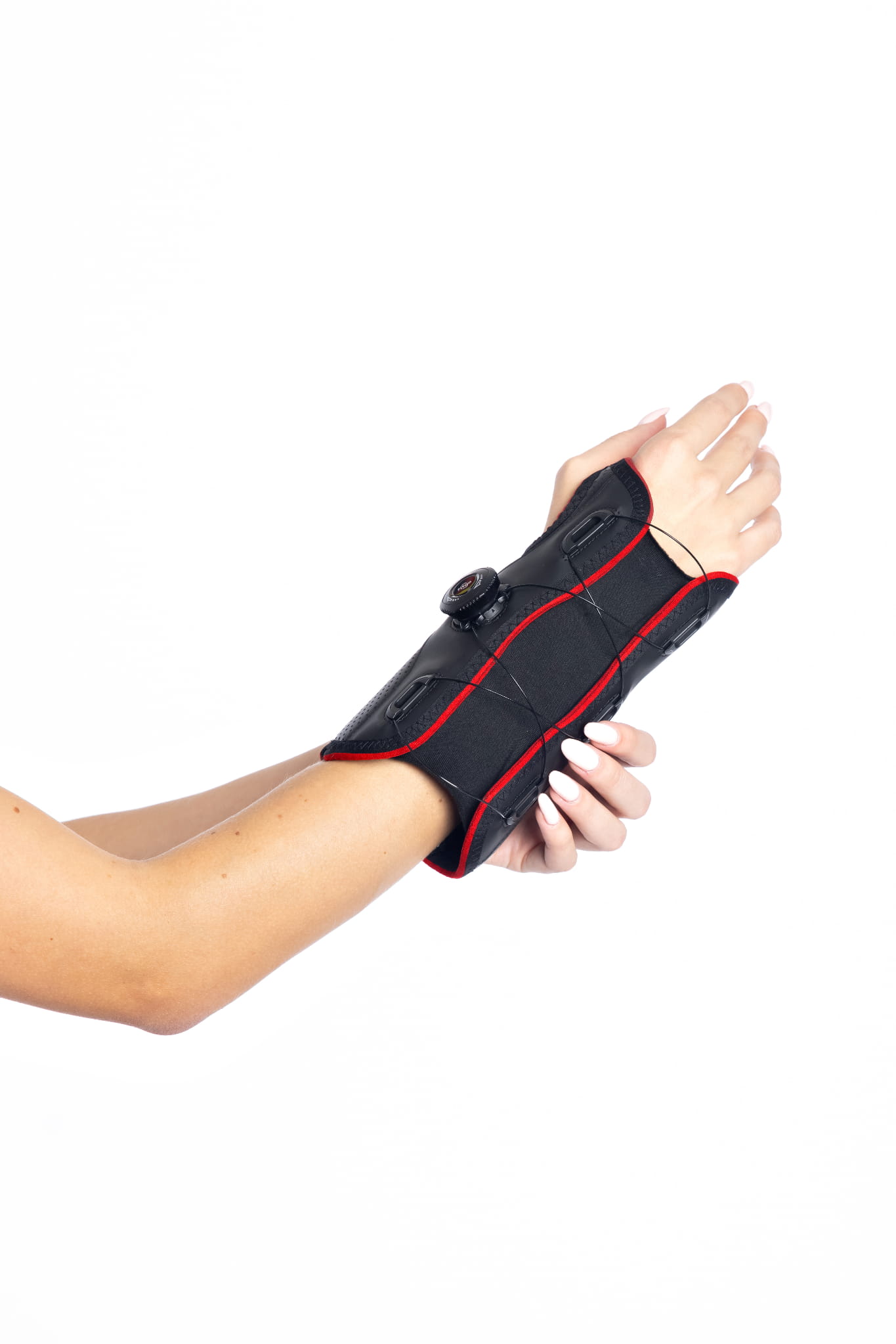 - Innowacyjny system szybkiego zapięcia - wykorzystanie systemu szybkiego zapięcia do dokładnego dopasowania i równomiernego ucisku, co gwarantuje skuteczną stabilizację stawu nadgarstkowego.